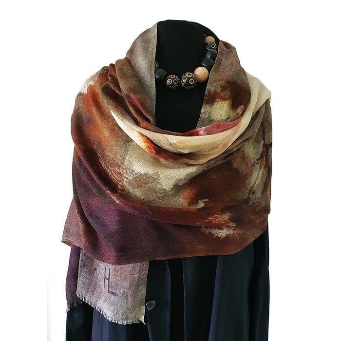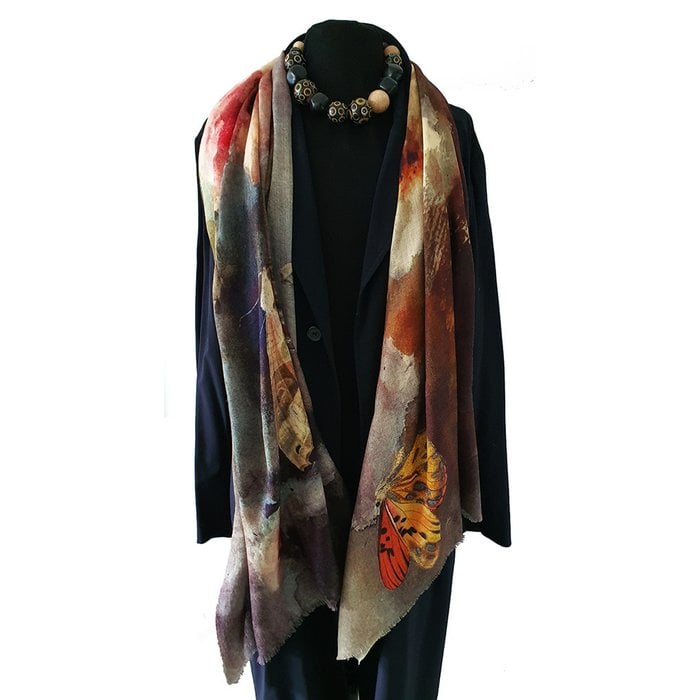 Deze prachtige warme en zachte sjaal is geweven van een fijne wollen draad dat bestaat uit een mengsel van schapenwol en wol van de Kasjmir geit.