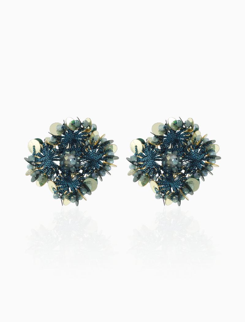 Blauwe Oorbellen Flower w/ Sequins S Aster