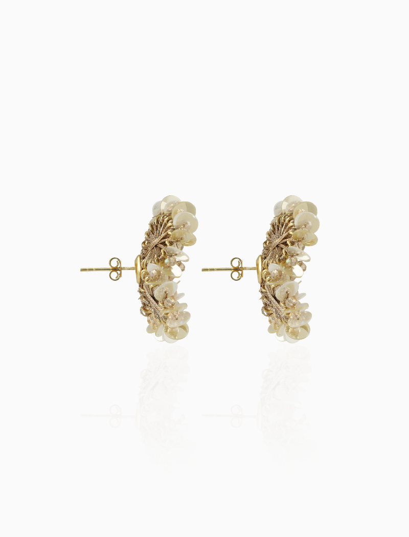 Elegant en licht als een veertje: de 'Flower S - Champagne' oorbellen van LOTT. gioielli zijn een ode aan subtiele luxe. De champagnekleurige glans van de pailletten geeft je look net dat beetje extra, terwijl het lichte gewicht zorgt voor ongekend draagcomfort. Perfect om je dagelijkse outfit te verrijken of om een feestelijke touch toe te voegen aan een avondlook. Tijdloos, verfijnd en stijlvol.