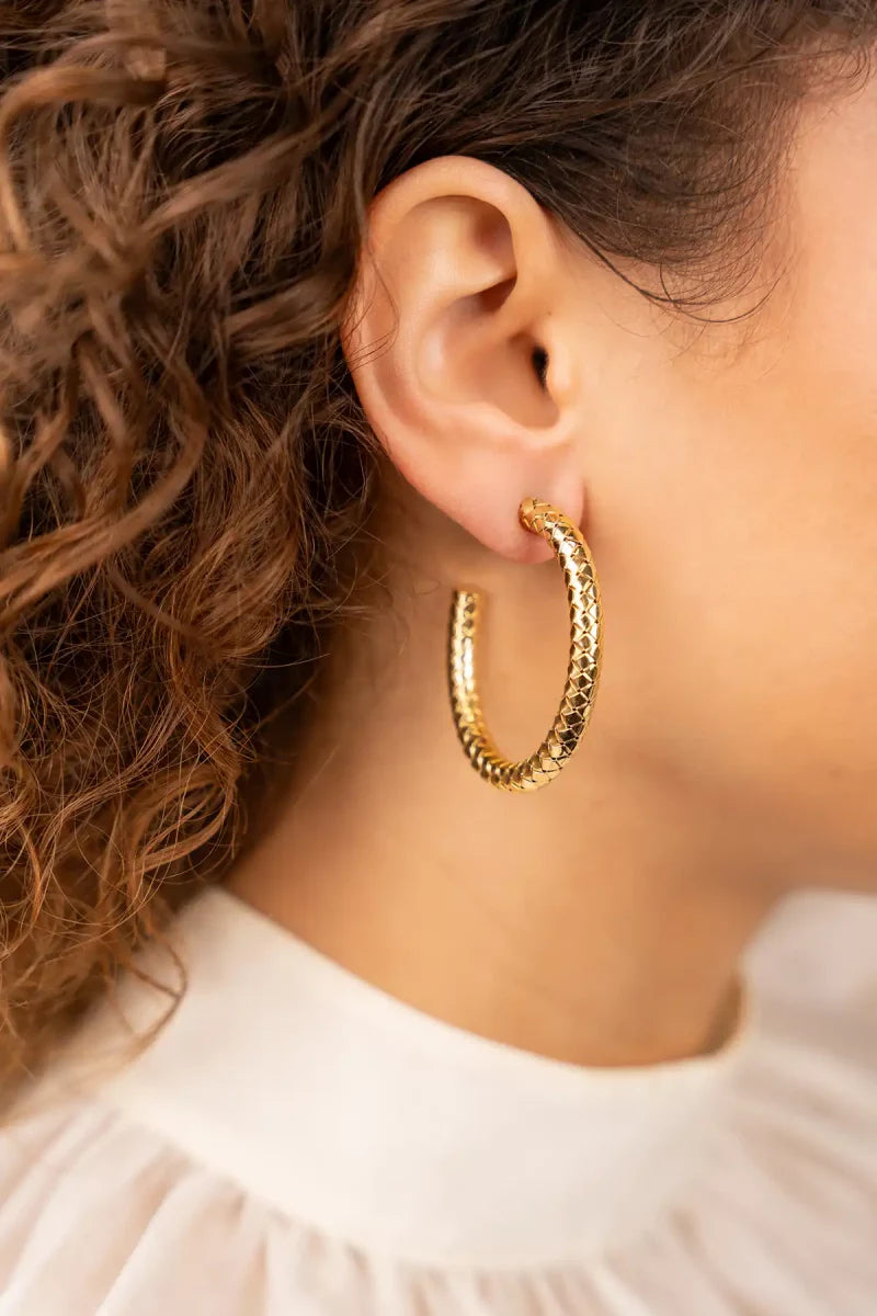 De verfijnde ruitjes in de Cobra creool ovaal medium oorbellen geven een stoere uitstraling aan iedere outfit.