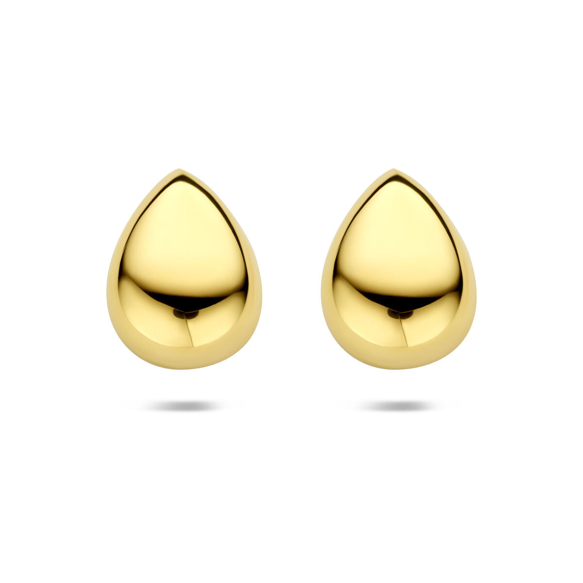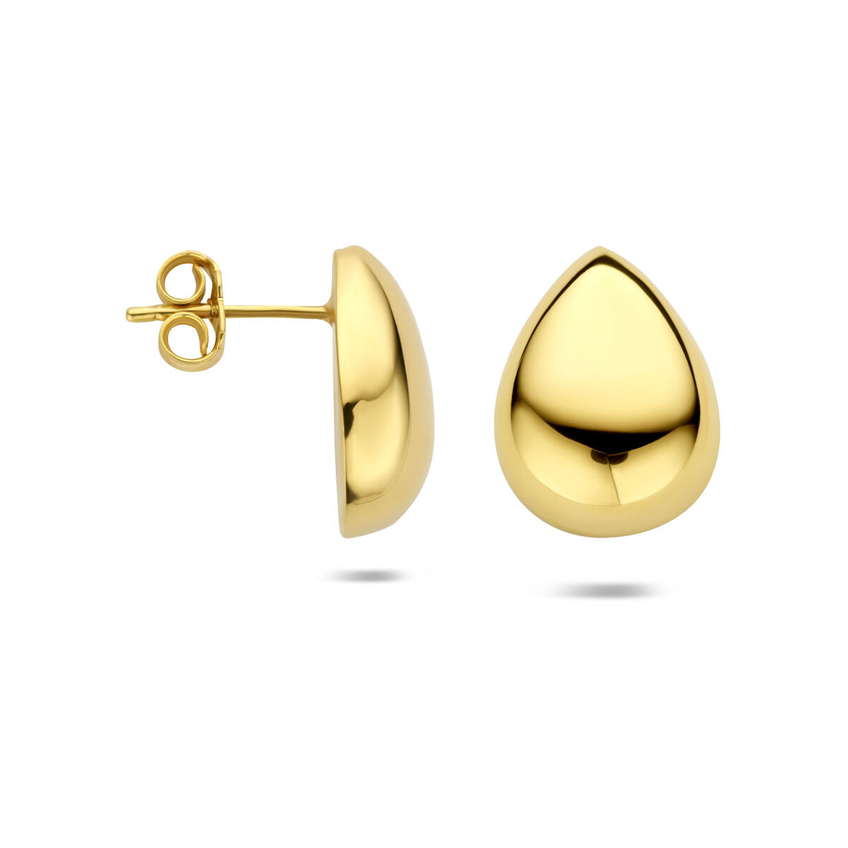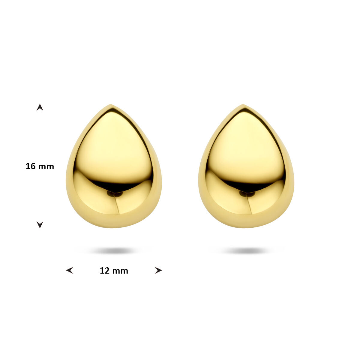 Verguld 925 zilveren oorknoppen uitgevoerd in de vorm van een druppel. De oorknoppen hebben een afmeting van 16x12mm. Geen garantie op plating.