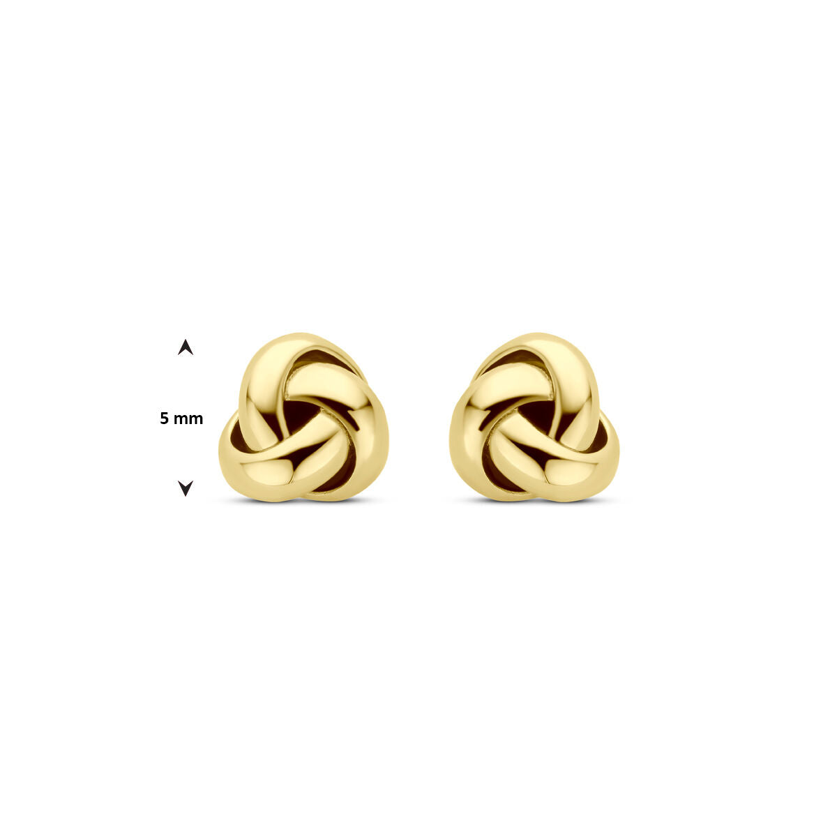 14k Geelgouden oorknoppen uitgevoerd in de vorm van een knoop. De oorknoppen hebben een diameter van 5mm.