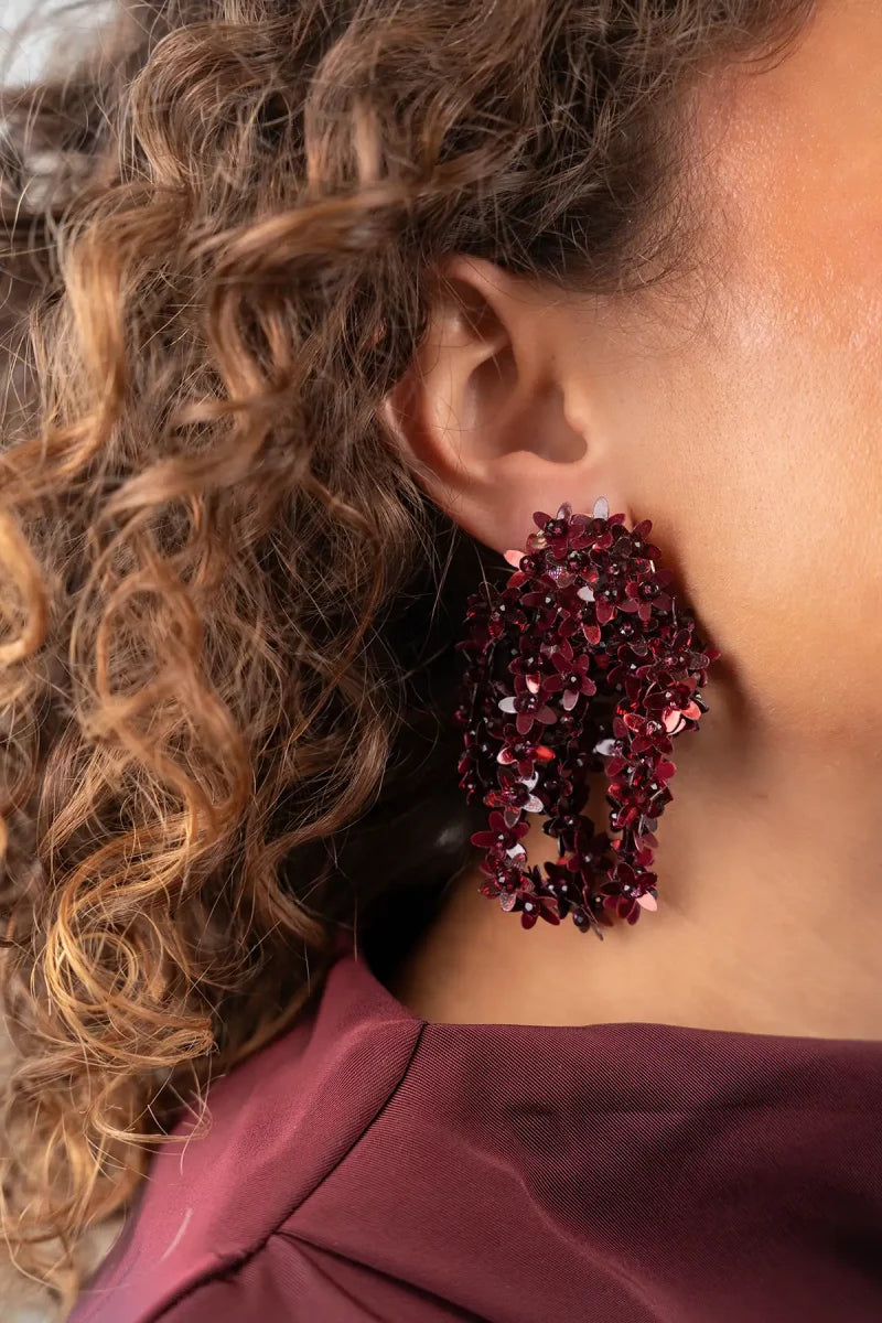 Straal kracht en zelfvertrouwen met Rode Oorbellen Double Flower Rain Fleur, handgemaakt met verfijnde elegantie en kracht, een sieraad dat zelfvertrouwen en vrouwelijkheid benadrukt.
