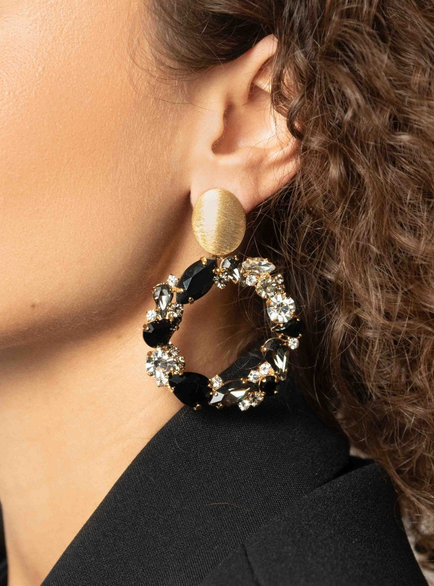 LOTT GIOIELLI - ZWARTE OORBELLEN STRASS LYNN ROND