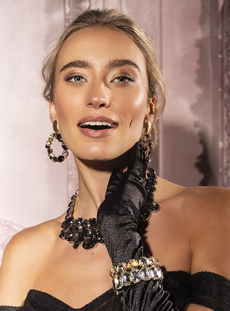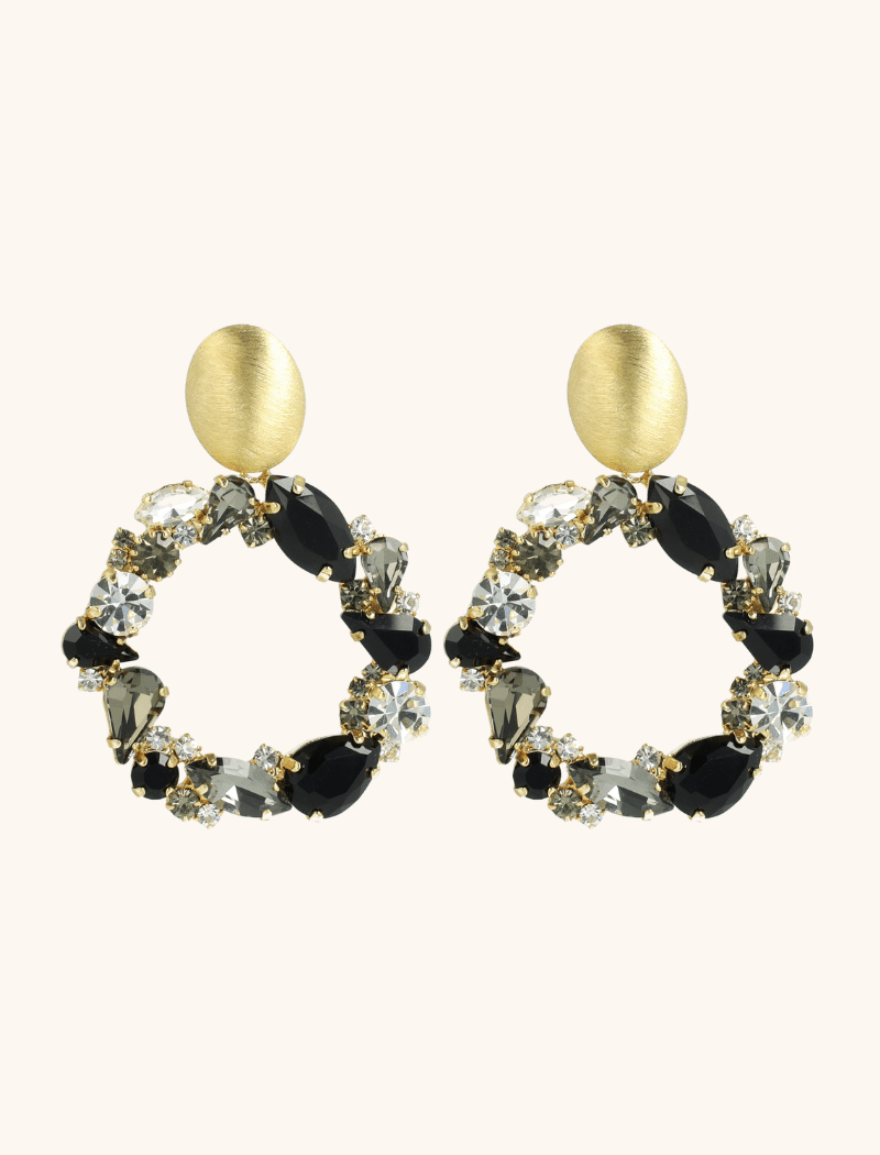 Ben jij klaar om op te vallen? Straal met deze prachtige ronde Strass oorbellen. Door de verschillende zwarte tinten en strass stenen weet je zeker dat je deze statement oorbellen met je favoriete look kunt combineren. Met een gewicht van 17 gram en een lengte van 6,5 cm, zijn ze ideaal te dragen. You deserve a LOTT.